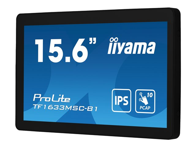 Connectivity is a breeze with HDMI and DisplayPort inputs, alongside a built-in USB 2.0 hub, facilitating seamless integration with a wide range of devices. The monitor's scratch-resistant surface and IP54-rated front offer protection against dust and water, ensuring reliability and longevity in challenging environments. With VESA mount compatibility and a comprehensive cable management system, the TF1633MSC-B1 is easy to install and integrate into any workspace. Its support for multiple OSD languages makes it a versatile choice for global use. Whether for interactive kiosks, retail displays, or educational purposes, the iiyama ProLite TF1633MSC-B1 is built to deliver superior performance and durability.
