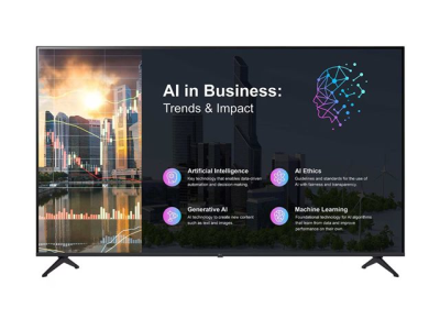 | Kommersiella funktioner | IPTV, kompatibel med SDP-server, Software Clock, stämningsdisplay, Mobile Connection Overlay, SNMP-support, Självdiagnos, Hospitality Technology Next Generation (HTNG) 1.4, Lock Mode, USB-portlås, video välkommen, skärmbild med välkomstmeddelande, Infoga bild, IP Channel Manager, hybridtextning, FailOver, spela via URL, Crestron Connected Certified, skärmströmhantering (DPM), Tidsschemaläggare, stöd för NTP, Embedded Content Management, Embedded Group Management, SuperSign Control+ kompatibel, SuperSign Control compatible, kompatibel med SuperSign CMS, LG Simple Editor, LG ConnectedCare |