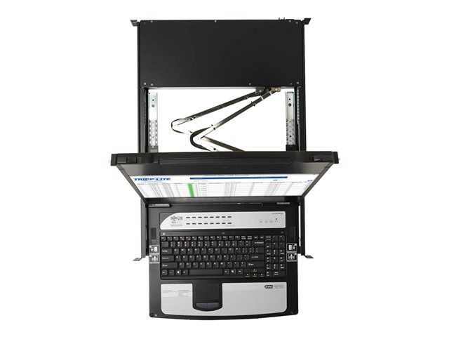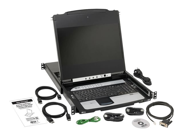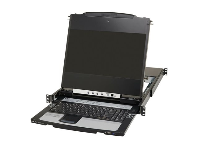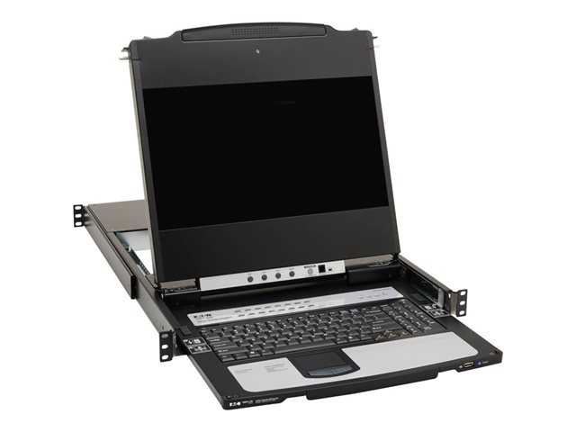 Eaton Tripp Lite Series DisplayPort IP KVM Console Switch 16Port 17in LCD Dual Rail 1URM - KVM-konsol med omkopplare för tangentbord/video/mus - 16 portar - USB - 17" - kan monteras i rack - 1920 x 1080 Full HD (1080p) @ 60 Hz - 16xDisplayPort - svart - 1U - TAA-kompatibel