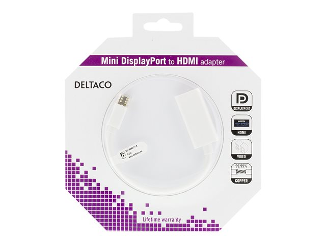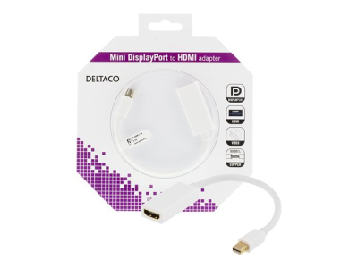 DELTACO Mini DisplayPort till HDMI-adapter med ljud, 20-pin ha - 19-pin ho, guldpläterad, 4K, 0,2m, vit