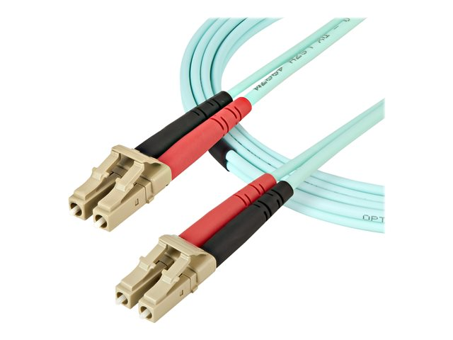 StarTech.com Aqua OM4 Duplex Multimode Fiber - 2m / 6 ft - 100 Gb - 50/125 - OM4 Fiber - LC to LC Fiber Patch Cable (450FBLCLC2) - Nätverkskabel - LC multiläge (hane) till LC multiläge (hane) - 2 m - 2 m - fiberoptisk - duplex - 50/125 mikron - OM4 - havsblå