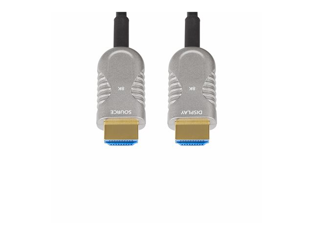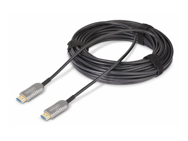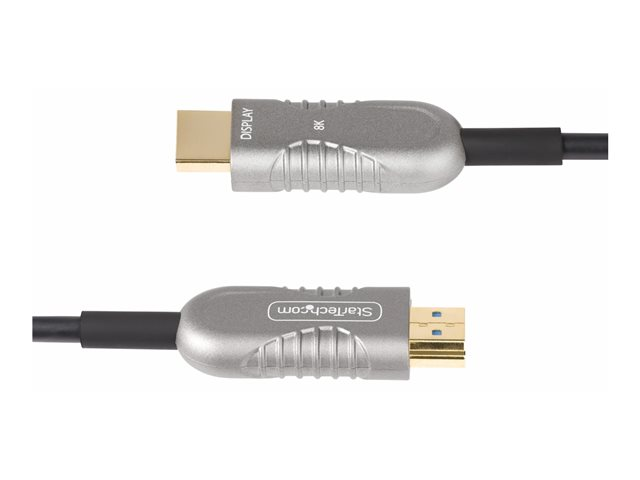 Upptäck en visningsupplevelse med StarTech.com 50ft HDMI 2.1 Hybrid Active Optical Cable. Den här kabeln är utformad för dem som kräver högkvalitativa, tillförlitliga anslutningar och levererar med en bandbredd på 48 Gbps, med stöd för 8K 60Hz och 4K 120Hz video. Det handlar inte bara om det visuella, den erbjuder också en uppslukande ljudupplevelse med 32 ljudkanaler och stöd för 7.1-surroundljud.