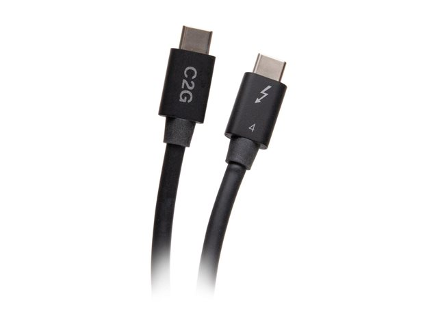 C2G 2.5ft Thunderbolt 4 USB C Cable - USB C to USB C - 40Gbps - M/M - Thunderbolt-kabel - USB-C (hane) till USB-C (hane) - USB 3.2 / DisplayPort 2.1 / Thunderbolt 4 - 30 V - 76 cm - USB-strömförsörjning (100W), 8K60Hz stöd, 4K60 Hz (4096 x 2160) stöd, Ethernet-stöd - svart