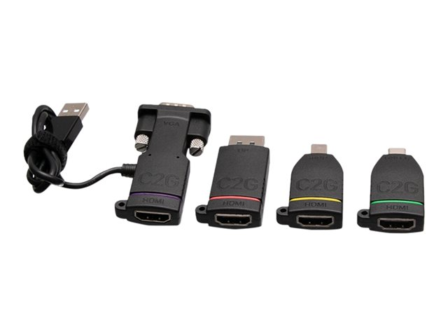 C2G Universal 4K HDMI Adapter Ring with Mini DisplayPort, DisplayPort, USB C, Lightning, and VGA - M/F - Videoadaptersats - svart - stöd för 4K