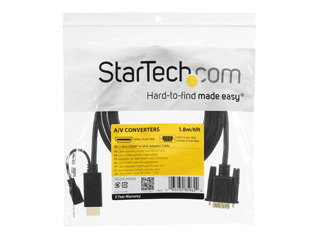 StarTech.com HDMI till VGA aktiv konverteringskabel på 91 cm ? HDMI till VGA adapter ? 1920x1200 eller 1080p - Adapterkabel - HDMI, Mikro-USB typ B (endast ström) till HD-15 (VGA) hane - 1 m - svart - aktiv, 1920 x 1200 (WUXGA) stöd