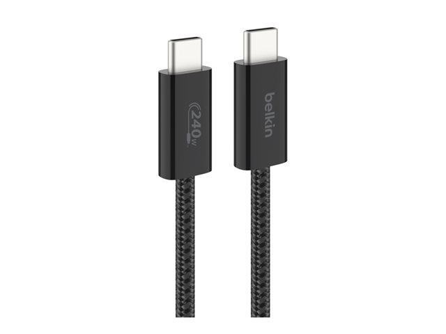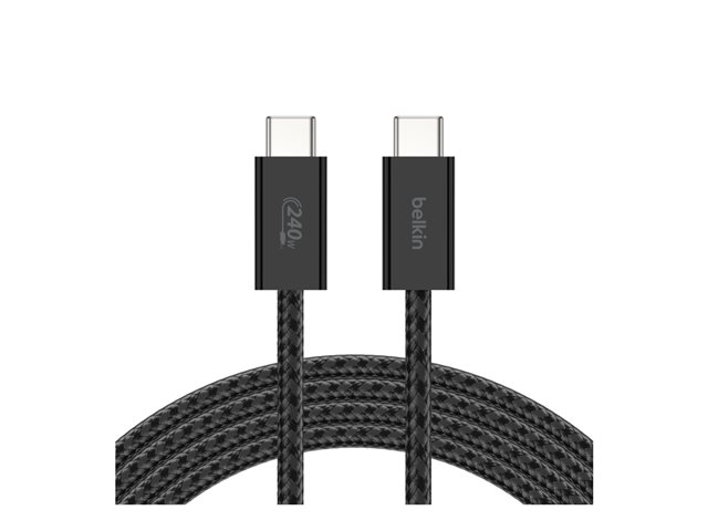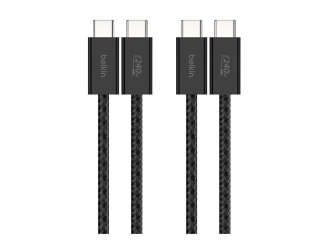 Belkin BoostCharge - USB-kabel - USB-C (hane) till USB-C (hane) - DC 48 V - 5 A - 1.5 m - USB-strömförsörjning (240W), flätad kabel - svart (paket om 2)