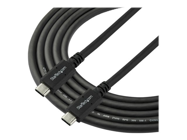 StarTech.com 1,8 m USB C till USB C-kabel - 5A, 100W PD 3.0 - Certifierad Works With Chromebook - USB-IF-certifierad - H/H - USB 3.0 5 Gbps - USB C-laddningskabel - USB Type-C-kabel - USB-kabel - 24 pin USB-C (hane) rak till 24 pin USB-C (hane) rak - USB 3.0 - 5 A - 1.8 m - stöd för 4K - svart - för P/N: DK30C2DAGPD, DK30C2HAGPD, SV211HDUC, SV221HUC4K USB315C5C6
