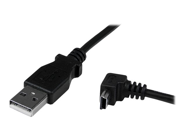 StarTech.com Down Angle Mini USB Cable - 2m - Black - USB A to Mini USB B - USB to Mini USB Cable - Mini USB Charger - USB A to Mini B (USBAMB2MD) - USB-kabel - USB (hane) till mini-USB typ B (hane) - USB 2.0 - 2 m - formpressad, 90° anslutning - svart