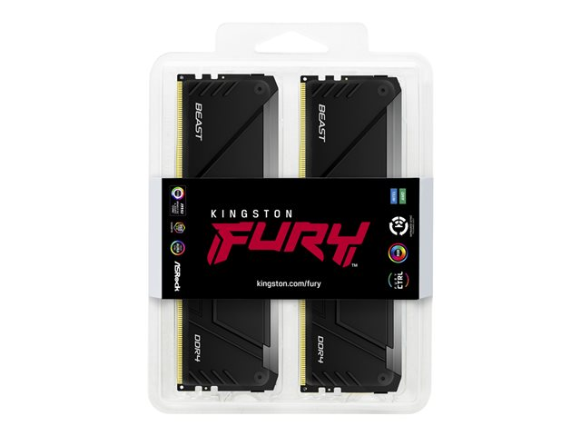 Kingston FURY Beast RGB - DDR4 - sats - 64 GB: 2 x 32 GB - DIMM 288-pin - 3200 MT/s / PC4-25600 - CL16 - 1.35 V - ej buffrad - icke ECC - svart