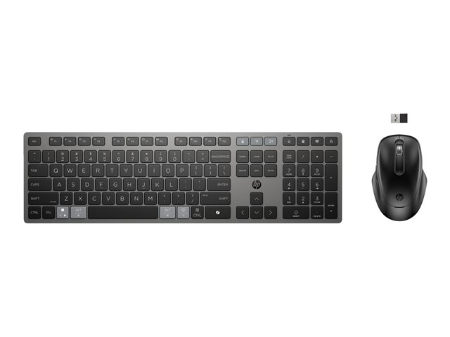 HP 725 - Sats med tangentbord och mus - flera enheter, uppladdningsbar, drivs av SuperCapacitor - full size - trådlös - Bluetooth, 2.4 GHz - hela norden - svart kvällning - Smart Buy 9T5B0UT#UUW