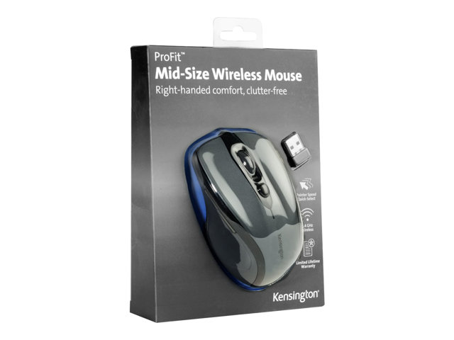 Kensington Pro Fit Mid-Size - Mus - högerhänt - optisk - 5 knappar - trådlös - 2.4 GHz - trådlös USB-mottagare - grafitgrå