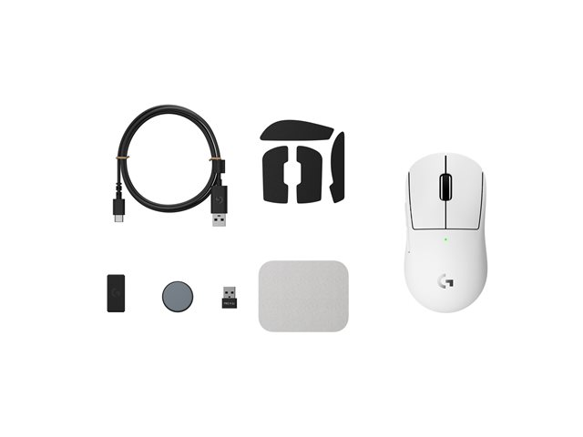 Logitech G PRO X SUPERLIGHT 2C - Mus - 5 knappar - trådlös, kabelansluten - 2.4 GHz, USB - vit 910-007538