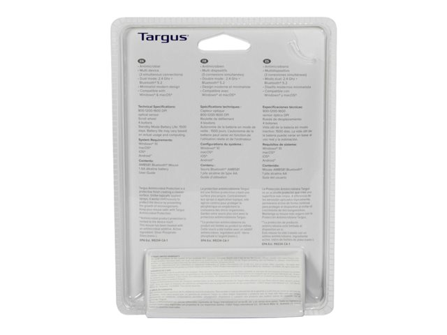 Targus - Mus - antimikrobiell - höger- och vänsterhänta - trådlös - Bluetooth 5.0 - svart
