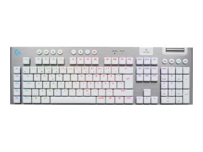 Logitech G G915 X - Tangentbord - gaming, LIGHTSPEED - full size - bakgrundsbelyst - trådlös - Bluetooth, 2.4 GHz, USB-C - vit