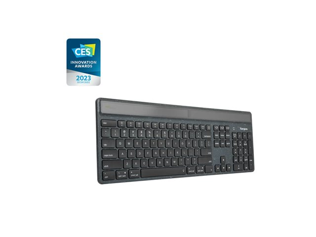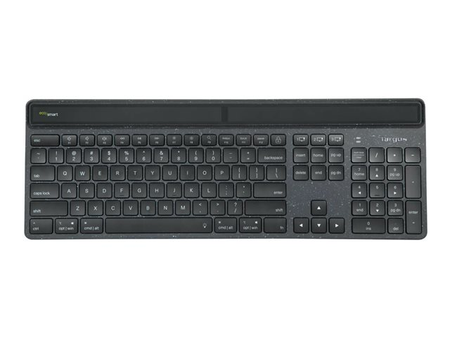 Targus EcoSmart - Tangentbord - hållbar energiutvinning - antimikrobiell - bakgrundsbelyst - trådlös - Bluetooth 5.0 - QWERTY - Nordisk - tangentbrytare: Saxnyckel - svart - recycled packaging