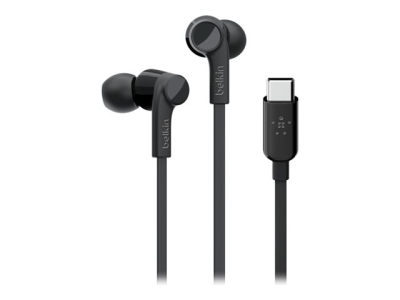 Belkin ROCKSTAR - Hörlurar med mikrofon - inuti örat - kabelansluten - USB-C - ljudisolerande - svart