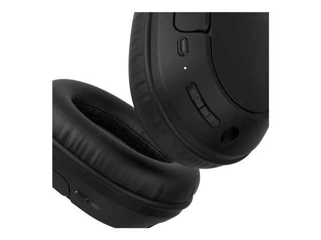 Belkin SoundForm Surround - Hörlurar med mikrofon - fullstorlek - Bluetooth - trådlös, kabelansluten - USB-C, 3,5 mm kontakt - svart