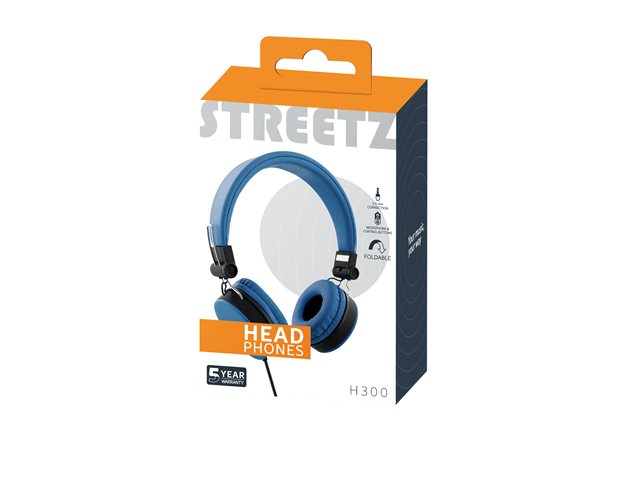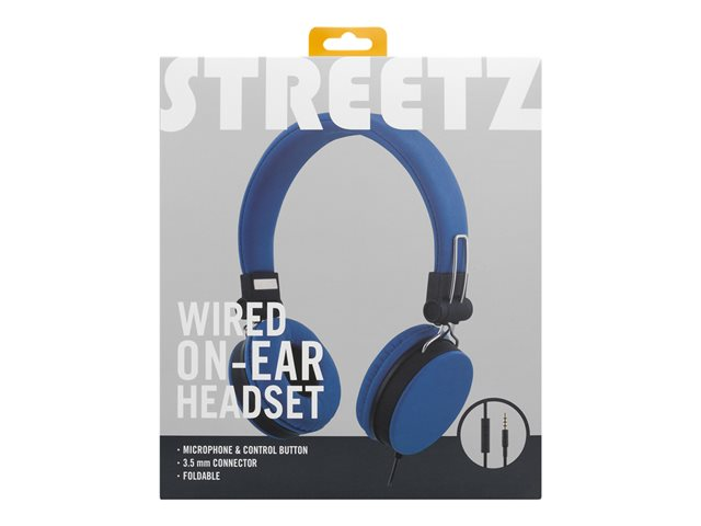 Streetz HL-W201 - Hörlurar med mikrofon - på örat - kabelansluten - 3,5 mm kontakt - blå