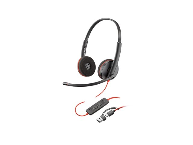 HP Poly Blackwire 3220 - Blackwire 3200 Series - headset - på örat - kabelansluten - USB-C - svart - Skype-certifierat, Cisco Jabber-certifierad, Avaya-certifierad, UC-certifierad