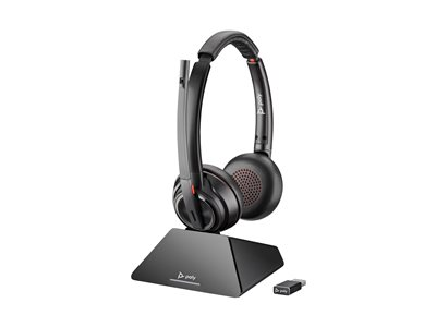 HP Poly Savi 8220 - Savi 8200 series - headset - på örat - DECT / Bluetooth - trådlös - USB-A via Bluetooth-adapter - svart - UC-certifierad, Certifierad för Microsoft-teams