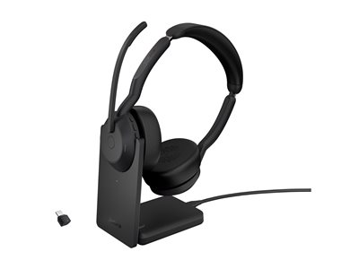 Jabra Evolve2 55 UC Stereo - Headset - på örat - Bluetooth - trådlös - aktiv brusradering - USB-C - svart - med laddningsställ - Zoomcertifierad, Cisco Webex Certified, Optimerat för Microsoft Teams, Alcatel-Lucent-certifierad, Avaya-certifierad, Unify-certifierad, MFi-certifierad, Amazon Chime-certifierad