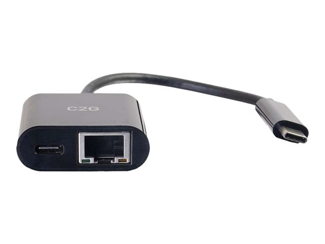 C2G USB C to Ethernet Adapter With Power Delivery - Black - Nätverksadapter - USB-C - Gigabit Ethernet x 1 - svart