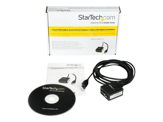 StarTech.com FTDI USB till seriell RS232-kabeladapter med 1 port och optisk isolering - Seriell adapter - USB - RS-232 - svart