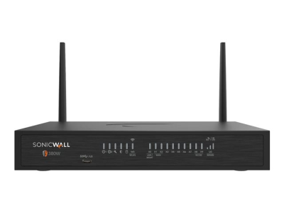 SonicWall TZ Series (Gen 8) TZ 380W - Säkerhetsfunktion - 1GbE, 2.5GbE, 5GbE - Wi-Fi 6 - 2.4 GHz, 5 GHz - SonicWALL Secure Upgrade Plus Advanced Edition (2 års alternativ) - skrivbord
