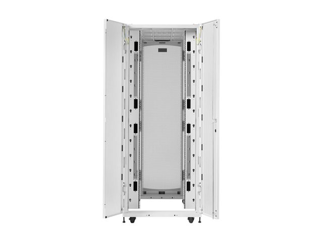 Eaton SmartRack 42U extra djup rackkabinett med standardbredd och hög kapacitet är utformat för att uppfylla behoven hos AI-serverapplikationer med sin robusta konstruktion och genomtänkta funktioner. Detta rackkabinett är tillverkat av stål och erbjuder hållbarhet och stabilitet med en viktgräns på 2268 kg. Den extra djupa designen underlättar luftflödet och kabelhanteringen, medan den låsbara funktionen säkerställer säker åtkomst till viktig utrustning.