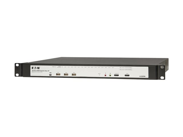 Eaton NetDirector 16-Port Cat5e KVM over IP Switch - Virtual Media, 2 Remote/1 Local User, HDMI Output, 1U Rack-Mount, TAA - Omkopplare för tangentbord/video/mus - CAT5/5e - 16 x KVM port(s) - 1 lokal användare - 2 IP-användare - rackmonterbar - TAA-kompatibel B064-016-02-IPH