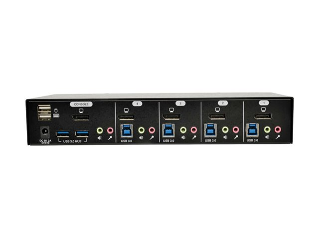 | Gränssnitt | 4 x DisplayPort-ingång 1 x tangentbord (USB) Type A 4 x USB 3.0 Type B 1 x DisplayPort-utgång 1 x mus (USB) Type A 4 x mikrofonutgång mini-jack 1 x mikrofoningång mini-jack 4 x hörlursingång mini-jack 1 x hörlursutgång mini-jack 2 x USB 3.0 Type A |
