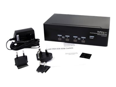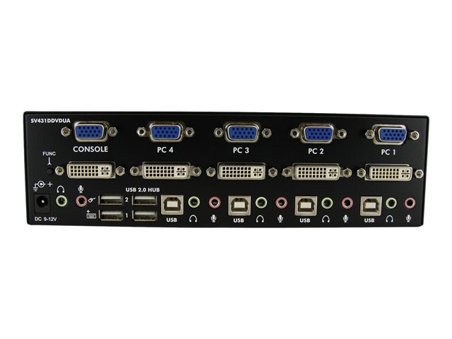 StarTech.com 4 Port DVI VGA Dual Monitor KVM Switch USB with Audio and USB 2.0 Hub (SV431DDVDUA) - Omkopplare för tangentbord/video/mus/ljud/USB - 4 x KVM/ljud/USB - 1 lokal användare - skrivbordsmodell - för P/N: IM12D1500P, SVA12M2NEUA, SVA12M5NA, USBDVI4N1A6, USBVGA4N1A10, USBVGA4N1A6