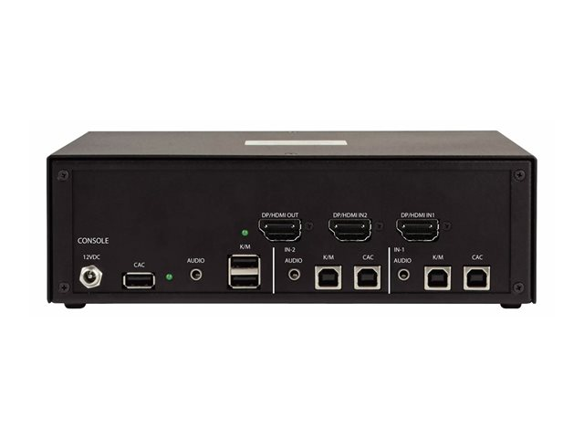 | Gränssnitt | 2 x DisplayPort/HDMI-ingång hona 2 x CAC input Type B common access card (CAC) 2 x tangentbord/mus Type B 2 x ljudinmatning telefon stereo 3,5 mm hona 1 x DisplayPort/HDMI-utgång 2 x tangentbord/mus Type A 1 x ljudutmatning telefon stereo 3,5 mm 1 x USB-utgång Type A common access card (CAC), for user |