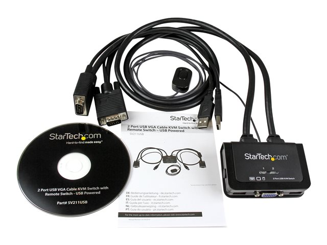 StarTech.com VGA 2 portar USB-kabel med KVM-switch - USB-driven med fjärrswitch - Omkopplare för tangentbord/video/mus - 2 x KVM port(s) - 1 lokal användare - skrivbordsmodell