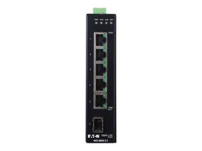 Eaton Tripp Lite series 5-Port Managed Industrial Gigabit Ethernet Switch - 10/100/1000 Mbps, GbE SFP Slot, -40° to 75°C, DIN Mount - Switch - Administrerad - 5 x 10/100/1000 + 1 x gigabit SFP (upplänk) - DIN-skenmonterbar - likström - TAA-kompatibel
