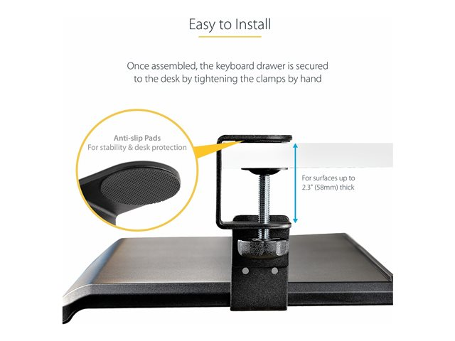 StarTech.com Under-Desk Keyboard Tray, Clamp-on Keyboard Holder, Supports up to 12kg (26.5lb), Sliding Keyboard and Mouse Drawer with C-Clamps, Height Adjustable Keyboard Tray - Black - Ergonomic Keyboard Tray (KEYBOARD-TRAY-CLAMP1) - Tangentbordsfack - kan monteras under bord - svart