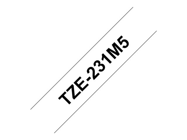 Brother TZe-231 - Lim - svart på vitt - Rulle (1,2 cm x 8 m) 1 kassett(er) bandlaminat (paket om 5) - för P-Touch PT-1010, 1090, 1230, 1280, 1290, 1880, 1950, 2100, 2430, 2700, 3600, 7100, 9500 TZE231M5