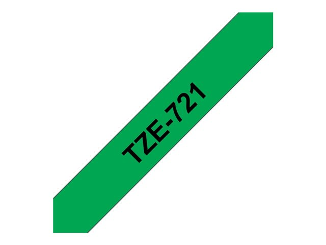 Brother TZe-721 - Svart på grön - Rulle (0,9 cm x 8 m) 1 kassett(er) bandlaminat - för Brother PT-D210, D600, H110, H200; P-Touch PT-1005, D450, H107; P-Touch Cube Plus PT-P710