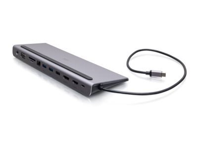 C2G USB-C 10-in-1 Triple Display Docking Station with HDMI, DisplayPort, VGA, Ethernet, USB, SD Card Reader, 3.5mm Audio and Power Delivery up to 100W - 4K 30Hz - Dockningsstation - USB-C - HDMI, DP, VGA - 1GbE