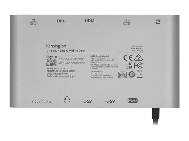Kensington UH1440P - Dockningsstation - USB-C 3.2 Gen 1 / Thunderbolt 3 / Thunderbolt 4 - DP, HDMI, VGA - 1GbE