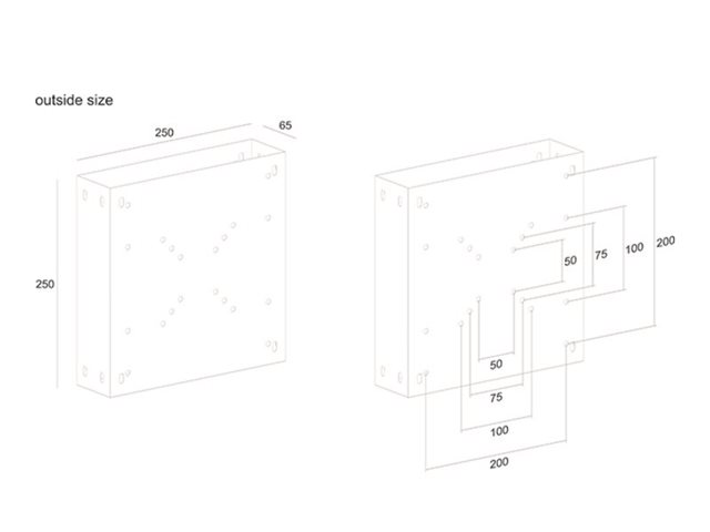 | VESA-infästningsgränssnitt | 100 x 100 mm, 75 x 75 mm, 200 x 200 mm, 50 x 50 mm, 200 x 100 mm |