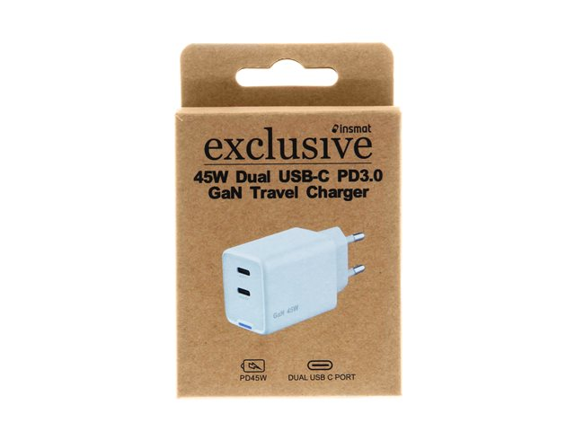 Insmat - Strömadapter - 45 Watt - 3 A - PD/PPS - 2 utdatakontakter (24 pin USB-C)