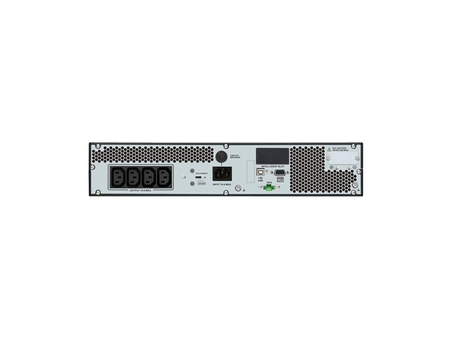 | Egenskaper | Horisontell orientering, Hörbart larm, nödavstängning, LCD-bildskärm, intern förbikoppling, kallstartfunktion, Eco-Mode, generatorkompatibel, intelligent batterihantering, dubbel konvertering, larm vid lågt batteri, överbelastningslarm |